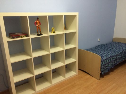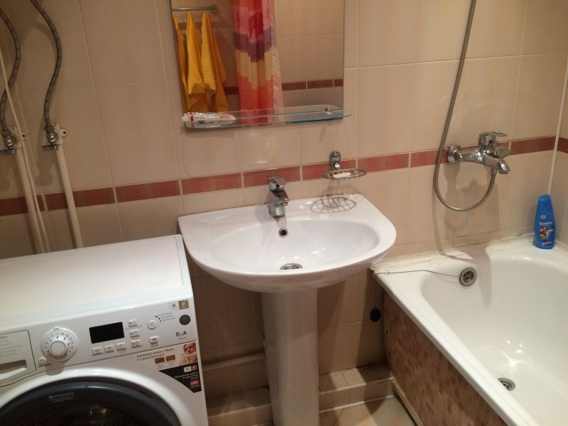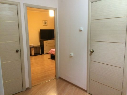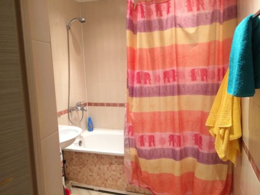 В зале - две красивые односпальные кровати, шкаф Икеа Экспедит, журнальный столик, диван двухспальный, торшер. Во второй комнате - двуспальная кровать, гардеробная, комод для белья, тумба под ТВ с ЖК телевизором. Санузел в плитке до потолка, с ванной - евростандарт. В прихожей - зеркало, вешалка для верхней одежды, полочка для обуви.